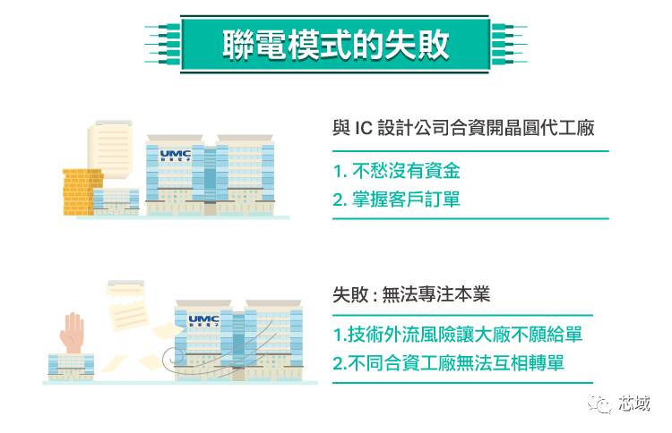 然而此举伴随而来的技术外流风险, 大型IC设计厂开始不愿意将晶片设计图给予联电代工,使得联电的客户群以大量的中小型IC设计厂为主。