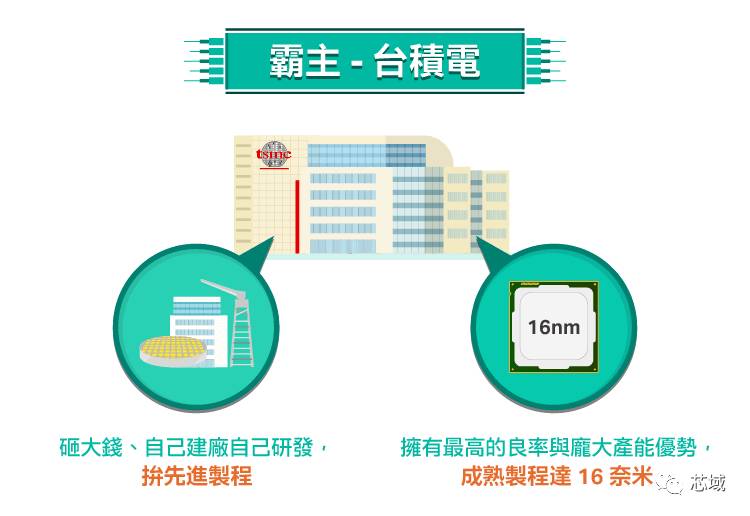 拥有最高的良率与庞大产能优势,成熟制程达16奈米。