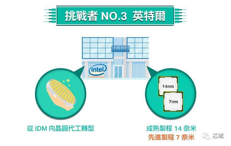 2016 年10 月, 晶圆代工厂台积电董事长张忠谋谈及Intel 跨足晶圆代工领域,谈及此举是把脚伸到池里试水温,并表示:
